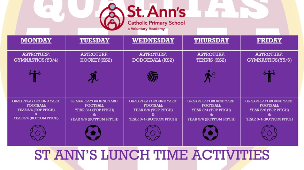 The school daily activity schedule means we have specified days for each year group and activities alongside the option for football.